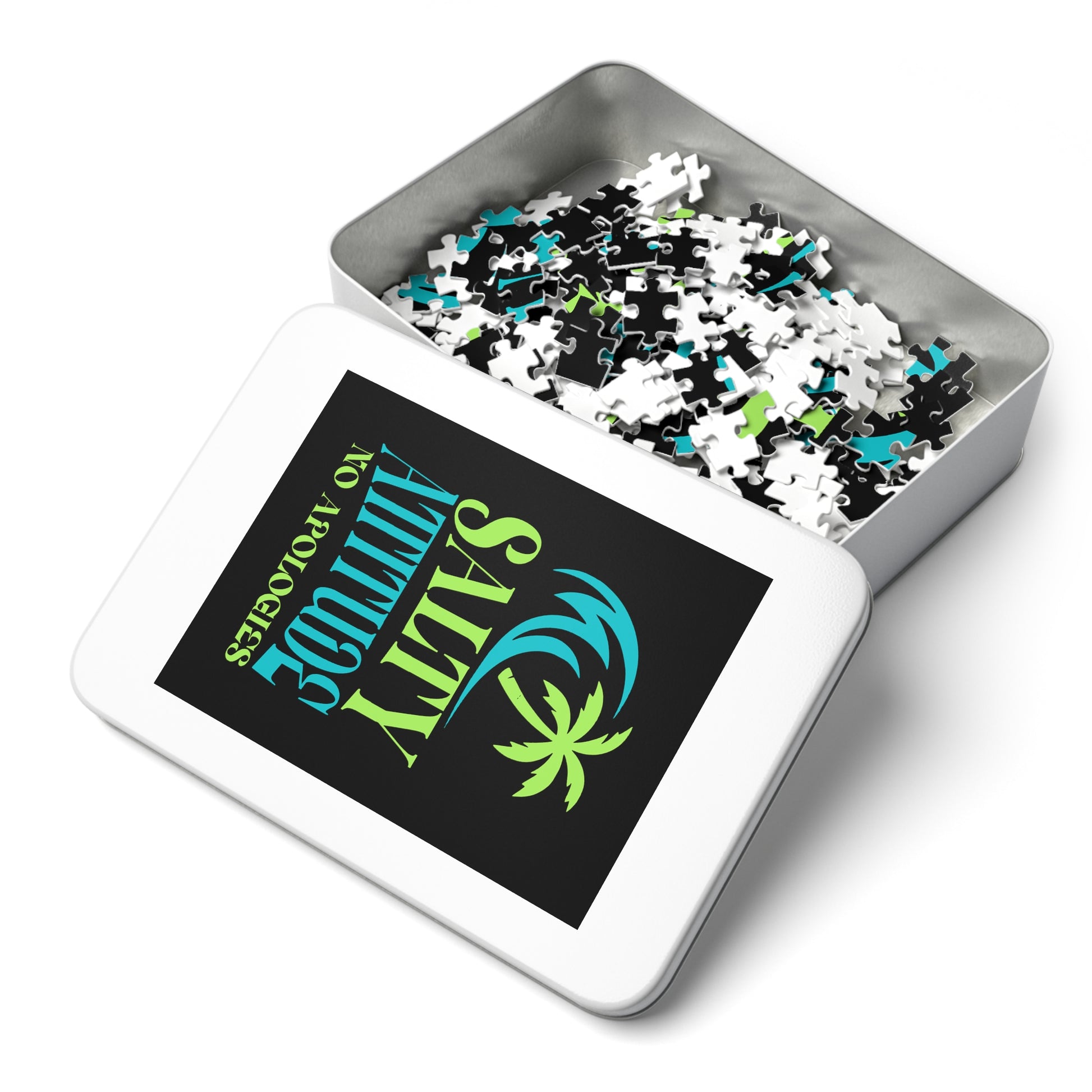 .: This custom 1000-piece puzzle comes in a white metal tin box