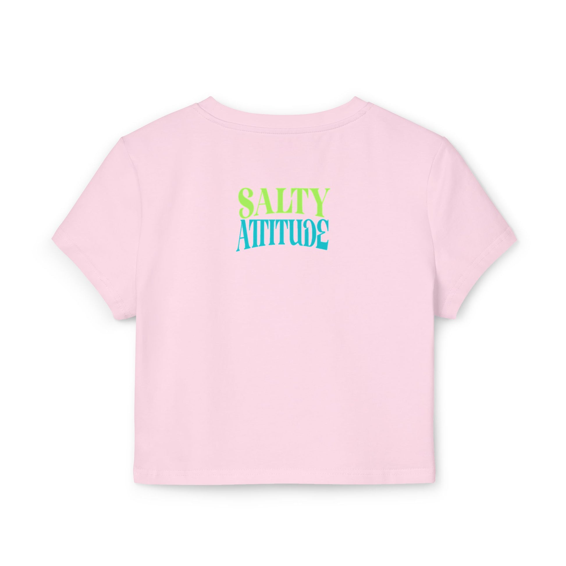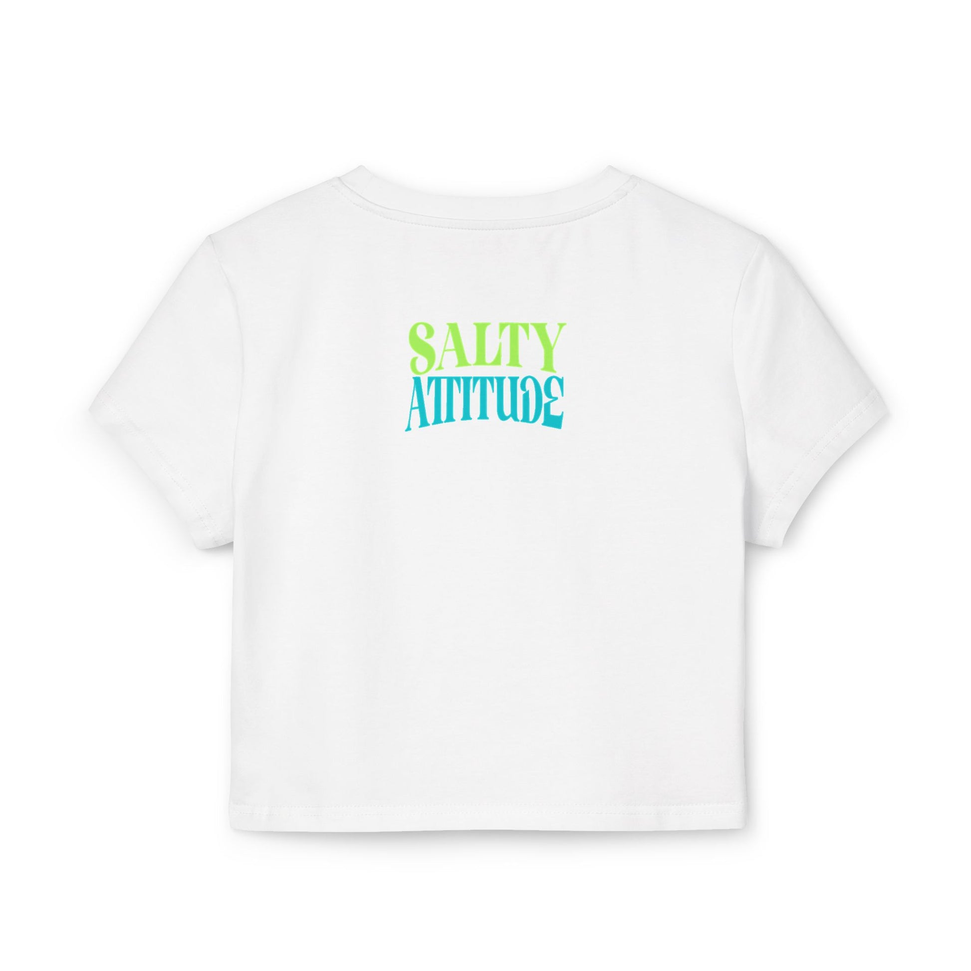 This women's baby tee is designed with a slim fit and mid-length cut, offering a flattering silhouette. Made from 100% organic cotton rib, it provides both comfort and sustainability, making it a versatile and stylish choice for everyday wear.